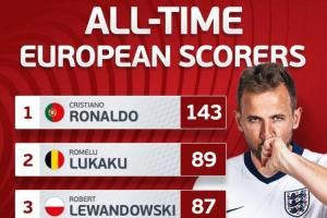 1️⃣ C罗(葡萄牙) — 143 球